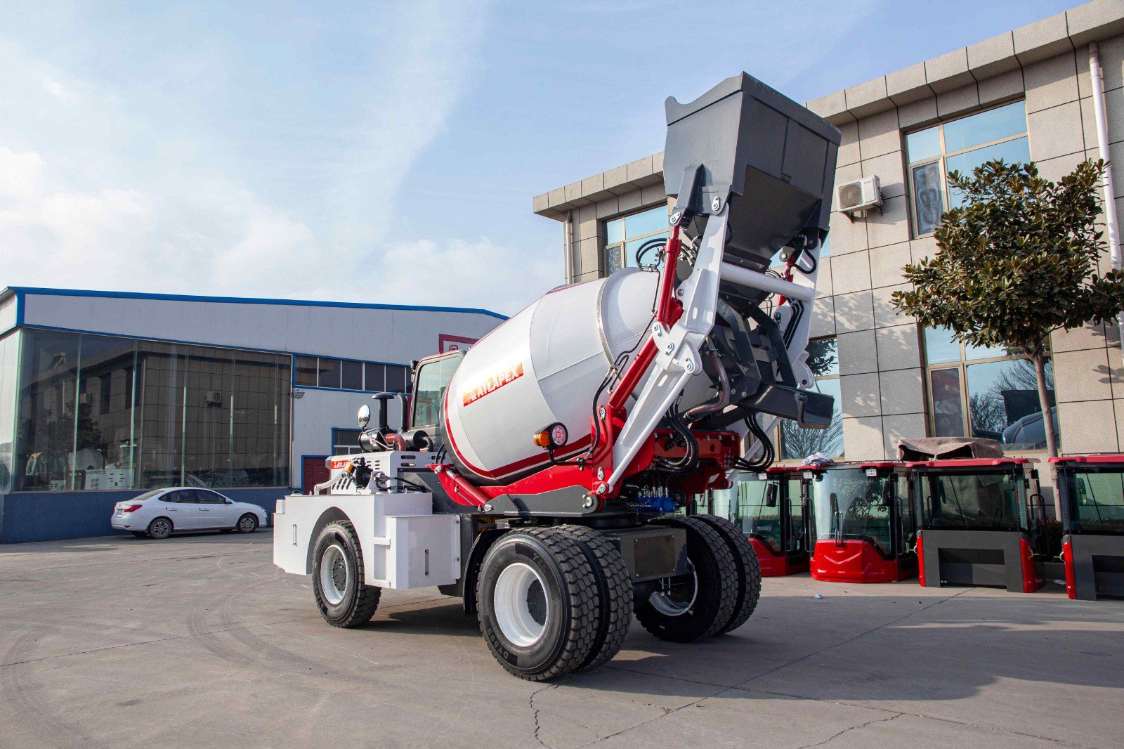 El tambor de mezcla gira a ≥15 revoluciones por minuto con una relación de reducción de 1:103, lo que asegura un mezclado uniforme y de alta calidad. La descarga gira 270° para una colocación flexible, mientras que las palas espirales integradas mejoran la eficiencia del mezclado. El bastidor de acero de alta resistencia está probado para 100.000 horas de duración.