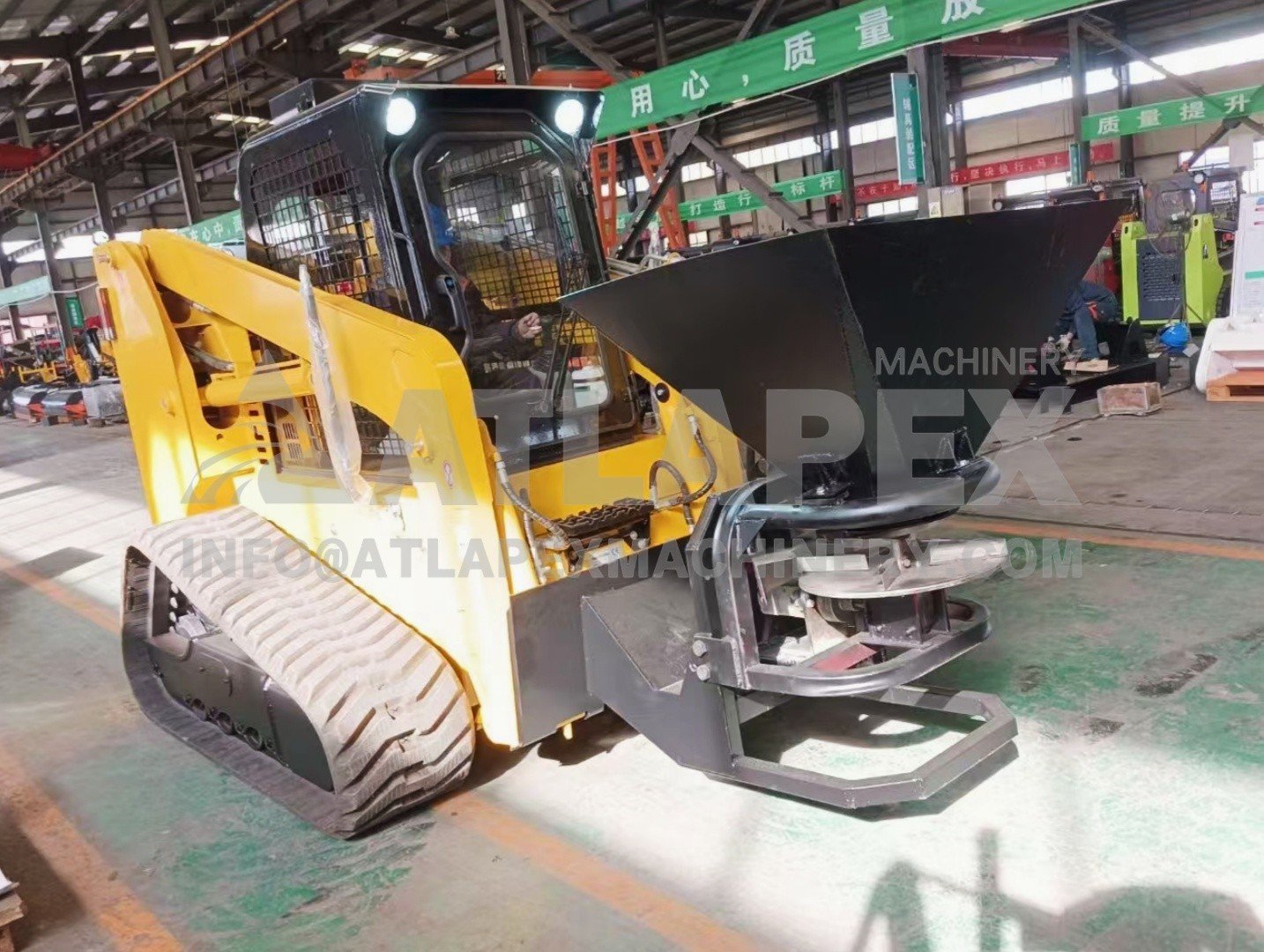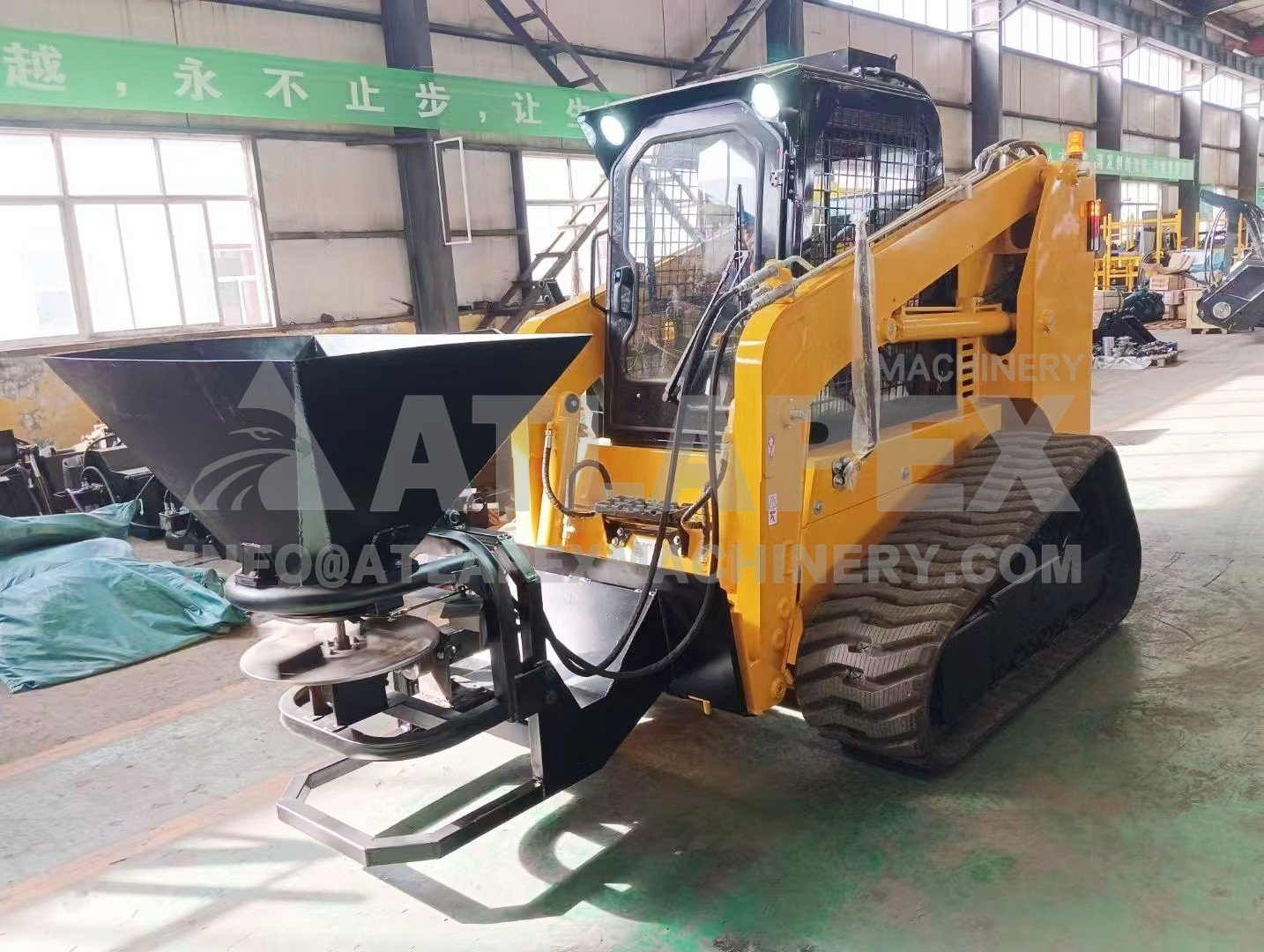 En resumen, el minicargador ATLAPEX con accesorio esparcidor es una herramienta fundamental para la eliminación de nieve y hielo en invierno, así como para diversas tareas de paisajismo. Su capacidad para proporcionar una aplicación uniforme y controlada de los materiales lo convierte en un equipo esencial para mantener espacios exteriores seguros y funcionales durante todas las estaciones.