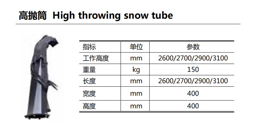El tubo de nieve de alto lanzamiento generalmente se utiliza junto con el soplador de nieve de la minicargadora para lograr una remoción de nieve más eficiente. En climas de nieve intensa o trabajos de limpieza posterior a la nieve, la minicargadora con el tubo de nieve de alto lanzamiento puede manejar rápidamente grandes áreas de nieve, especialmente en lugares como calles urbanas, estacionamientos y aceras. En comparación con las quitanieves tradicionales, la ventaja del tubo de nieve de alto lanzamiento es su mayor capacidad de remoción de nieve y una mayor distancia de lanzamiento de nieve, lo que puede reducir efectivamente el tiempo de limpieza y mejorar la eficiencia del trabajo.